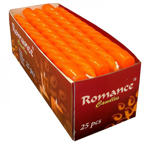 Galda svece vītas Romance 24cm, oranžas, 25gab. (8)