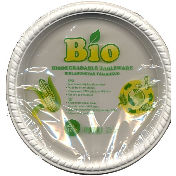 Šķīvis PLA (kukurūzas bioplastmasas), 23cm, 12 gab. (40) (Ursus OÜ (EE))