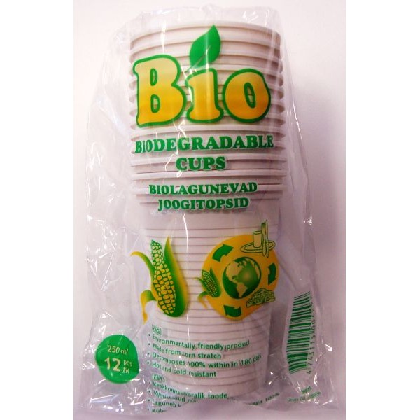 Glāzes PLA (kukurūzas bioplastmasas), 250ml, 12 gab. (96) (Ursus OÜ (EE))